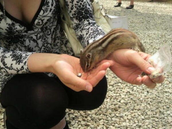 おやつを持っているとリスが容赦なく爪をたてて登ってくるので、半袖や薄手の服だと痛いと思います。